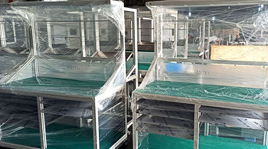 防塵罩頂部是滑動(dòng)門,使用了1530連接塊和導(dǎo)軌,四個(gè)立柱安裝了蹄腳。