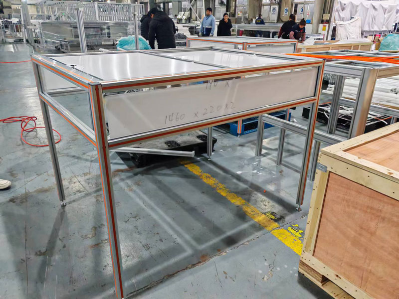 铝型材防护罩是一种以工业铝型材为设备外罩外壳,多见于各种非标机械设备的外罩,各种输送线流水线外罩,大型洁净棚外罩,焊房大型护罩等,能起到区域隔离,静音防尘,保护设备及生产人员安全。铝型材制作的防尘罩的样式有很多,有些是密封的,可以起到隔离噪音的作用,净化车间环境。有些是带有开关门的,不仅可以起到防尘的作用,而且还利于后期维修工作。亚克力板也有透明的,茶色,红色等颜色可以选择。